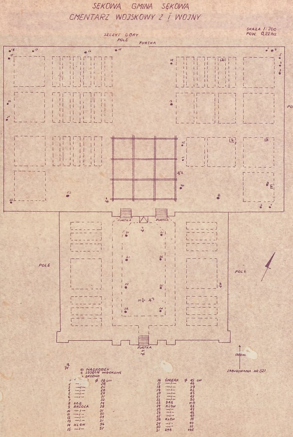 Ten piękny i urokliwy cmentarz, zaprojektowany został przez Hansa Mayra. Położony jest po lewej stronie drogi (z Sękowej do Męciny Małej) na wzniesieniu góry "Łysula". Projektant cmentarza nie zrealizował w pełni swoich planów lecz patrząc na nie przychodzi nam na myśl układ świątyni egipskiej, zwiedzając cmentarz trudno dostrzec "gołym okiem" to porównanie, lecz jeśli przyjrzymy się bliżej zobaczymy z czego ono wynika. Do świątyni egipskiej upodabnia narastająca wertykalizacja, pionowe linie pylonów, smukłość krzyża, wreszcie pergola (której konstrukcja nieco przytłacza cmentarz) oraz smukła bryła kaplicy - wieży widokowej. A także masywne mury z kamiennych ciosów, potęgujące wrażenie monumentalizmu budowli i umieszczenie kaplicy na wzgórzu co symbolizuje wieczne trwanie. Cmentarz nr: 80 w Sękowej pierwotnie miał się składać z trzech wydzielonych elementów. Położony na wysokim wzgórzu opasany jest masywnym murem, a wejścia do niego strzegą cztery pylony (były one wynalazkiem Egipcjan i integralna częścią ich świątyń, które zawsze otaczał wysoki, monumentalny mur). Za bramą naprzeciw wejścia stoi masywny betonowy krzyż. Po jego bokach są umieszczone pola grobowe z nagrobkami (ozdobione żeliwnymi krzyżami typu "porucznik Mayr" na których na przecięciu ramion umieszczono datę 1915, oraz stelle na których umieszczono tablice żeliwne bądź metalowe z imieniem i nazwiskiem pochowanych tutaj żołnierzy). Do następnego poziomu, nad którym góruje potężna betonowa pergola (którą otaczają rzędy nagrobków), prowadzą dwa ciągi schodów. Dalej według Hansa Mayera miała powstać potężna neorenesansowa kaplica - świątynia, zwieńczona złotą kopułą, upamiętniająca krwawe walki pułków bawarskich w tym rejonie. Do wybudowania świątyni jednak nie doszło, a szkoda bo z planów wynika że mogła posiadać imponujące wymiary, a także taras widokowy z którego można byłoby podziwiać przepiękną panoramę Beskidu. Pochowani żołnierze spoczywają w 85 mogiłach zbiorowych oraz 23 pojedynczych.