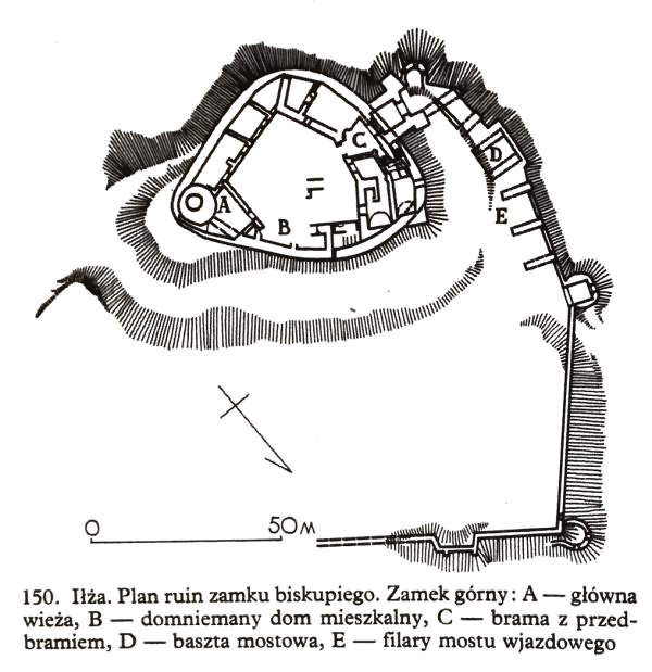 Ruiny zamku biskupiego na wysokiej górce panującej nad miasteczkiem położonym na zachód od niej.