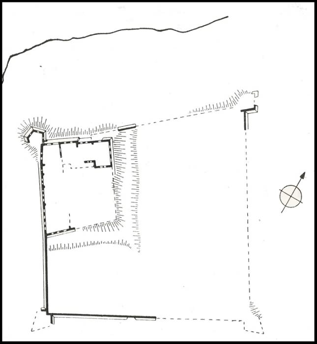 Zespół warowny składa się z dwóch elementów przestrzennych: zamku właściwego i przedzamcza, zamkniętych wspólną linią murów z czterema bastejami na narożach, otoczonych fosami, a od północnego zachodu stawami i rozlewiskami rzeczki. Zamek właściwy, być może wzniesiony na miejscu starszego założenia obronnego, jest oddzielony od przedzamcza zachowaną fosą. Zbudowany z kamienia i cegły, na planie czworoboku, składał się z dwóch skrzydeł mieszkalnych ustawionych pod kątem prostym, tworząc tym samym prostokątny dziedziniec z wjazdem od strony północno – wschodniej. Na narożu stanęła pięcioboczna basteja związana z całym zespołem warownym, mieszcząc izby mieszkalne. Zamek właściwy został zapewne wzniesiony w 2 połowie XVI w., przebudowany w latach 1604 – 08 i wtedy prawdopodobnie zwieńczony attyką.