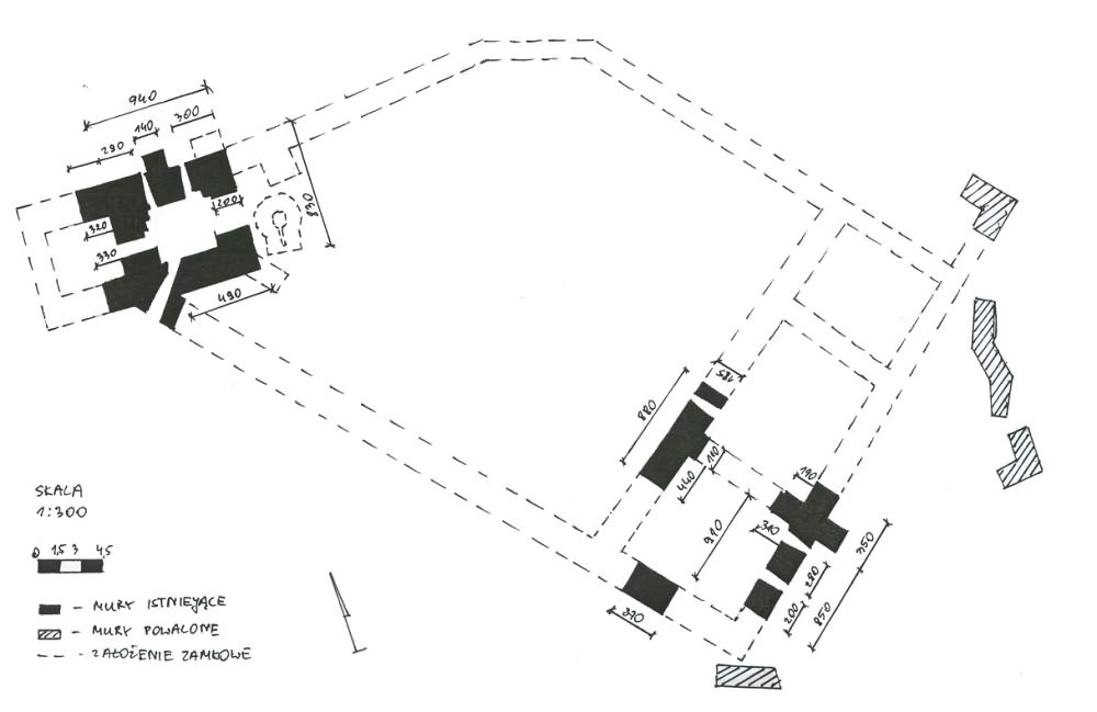 Rzut zamku, skala 1:300. Oprac. Anna Mazurek, IV 2006.